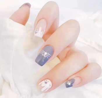 R709 Beauty Tips Set of 24 pcs Press On nails featuring adorable pink and white rabbit designs