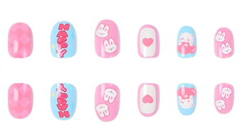K19 Beauty Tips false nails for kids Teenage or small fingers.Cherry Rabbit Series (Pink rabbit)