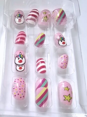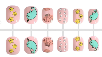 K52 Beauty Tips 24pcs reuseable artificial nails for kids Teenages or small fingers.