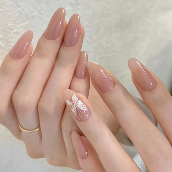 Beauty Tips Press On nails : Simple Elegance beige false Acrylic artificial fake nails adorned with a delicate butterfly,perfect for a touch of elegance. (Beige butterfly, A311)