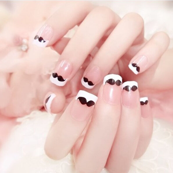 Beauty Tips nails: Set of 24 Achieve a chic and effortless look with our elegant white and black star press on false Acrylic artificial fake nails! a unique blend of simplicity and charm.(N033)