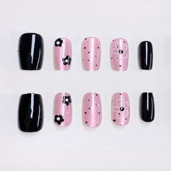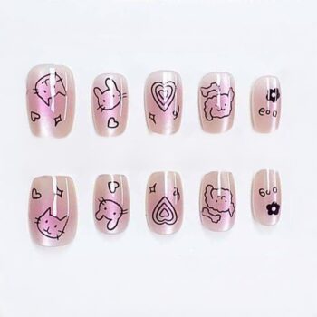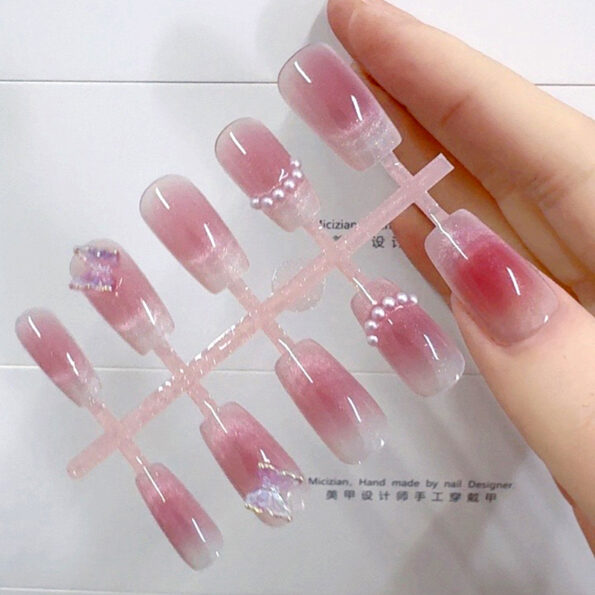 Beauty Tips cat eye Press-On Nails Set, simple elegant pink with 3D butterflies, short design convenient for office work. CE6054 Size M 10 Pcs