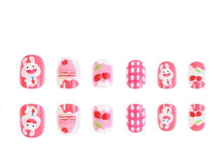 K19 Beauty Tips false nails for kids Teenage or small fingers.Cherry Rabbit Series (Pink rabbit)