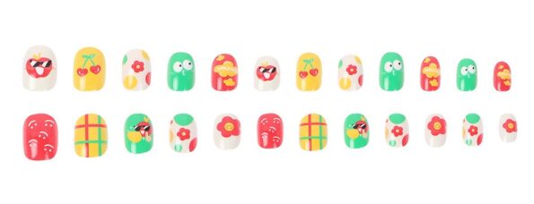 Beauty Tips 24pcs reuseable artificial pink press on false nails for kids Teenages or small fingers.Cartoon Cherry flora(yellow green, 52)