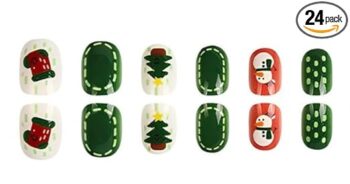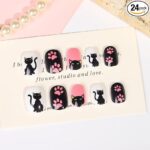 Beauty Tips 24pcs reuseable artificial nails for kids Teenage or small fingers.Cartoon kitty.(Blue black, k65)