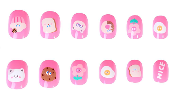 Beauty Tips 24pcs reuseable artificial pink press on false nails for kids Teenage or small fingers. Cartoon Pink Pattern (Pink, 102)