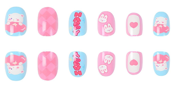 Beauty Tips 24pcs reuseable artificial pink press on false nails for kids Teenage or small fingers.Cute Bunny and Bear(Pink Bunny, 72)