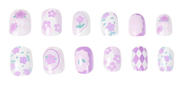 Beauty Tips 24pcs reuseable artificial pink press on false nails for kids Teenage or small fingers.Purple flora.(Purple,K74)