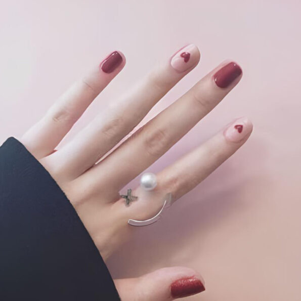 N018 Beauty Tips Press On nails featuring playful red heart designs. a sweet simple, elegant look!