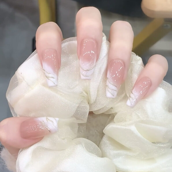 Beauty Tips Premium Press On Nails, French Marble Design, Long Coffin Shape, Natural Pink Base, 24 Pcs. R14