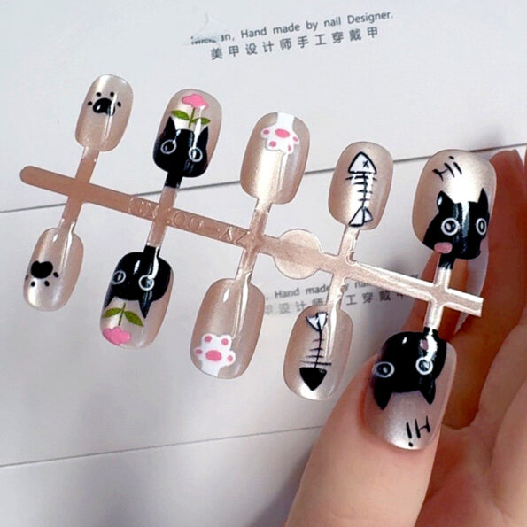Beauty Tips cat eye artificial nails with Cute Cartoon Press On Nails, 10 Pieces,please measure your nails Size first. SCE5020 Size S