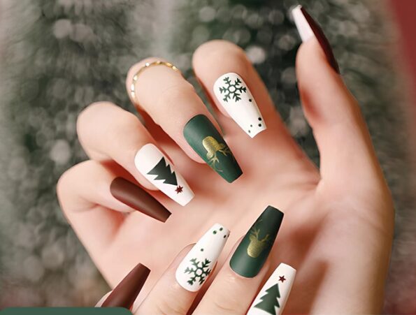 Beauty Tips Press On Nails for Christmas: Sparkling eye-catching press on nails brings luxurious sparkle and glam to any look, party and holiday nails. (SCK002, Long)