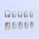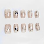 Beauty Tips cat eyes Press-On Nails, French Tip with Black Stars Design, Nude Pink Base, 30 Pcs T126