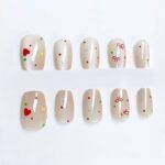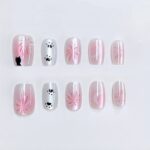 Beauty Tips cat eye Press-On Nails, Nude French Manicure with Leopard Print Design,30 Pieces T163