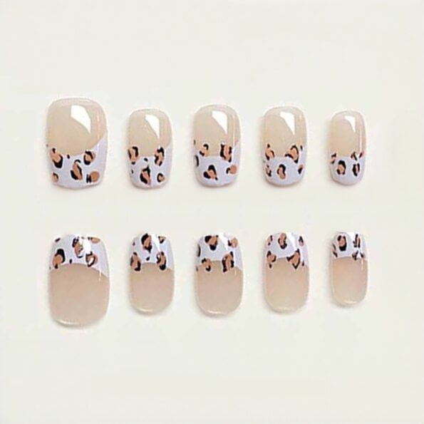 Beauty Tips cat eye Press-On Nails, Nude French Manicure with Leopard Print Design,30 Pieces T163